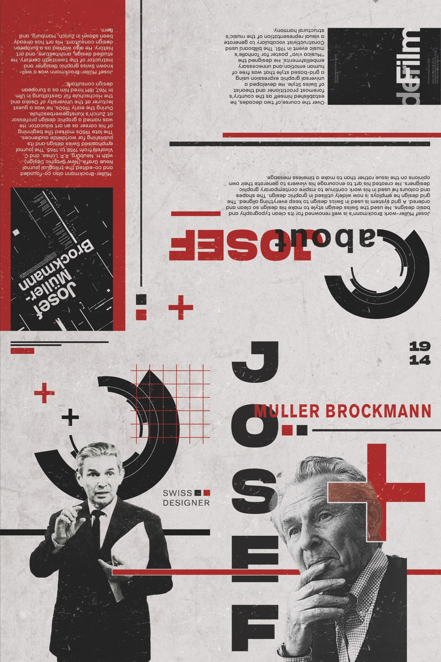 This project, a zine honouring Josef Müller-Brockmann, was created using the classic Swiss design aesthetic with a personal touch from myself. In keeping with the principles of Swiss modernism, the layout features bold geometric compositions, crisp typography, and grid-based accuracy. However, I add subtle experimental aspects like dynamic graphic layering and a distinctive layout with my own personal touch. The zine uses timeless yet modern visual storytelling to examine Müller-Brockmann's influence on graphic design.